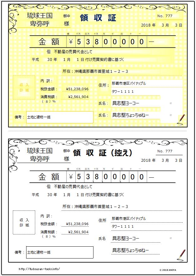 おすすめ!”ANIYA【ビジネス】領収書(黄)”【ビジネスEXCELテンプレート】
