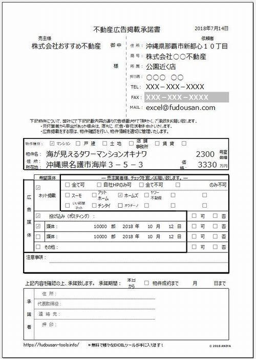 おすすめ無料!”【広告】不動産広告掲載承諾書”【不動産EXCEL無料テンプレート】