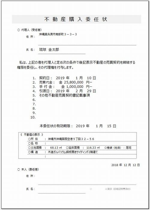 おすすめ!”【委任状】不動産購入委任状”【不動産EXCELテンプレート】