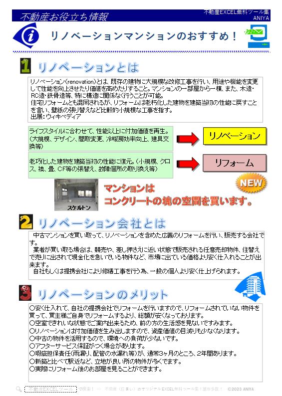 おすすめ!今人気の中古マンション”【役立情報】リノベーションマンションのおすすめ!”【不動産EXCEL無料テンプレート】