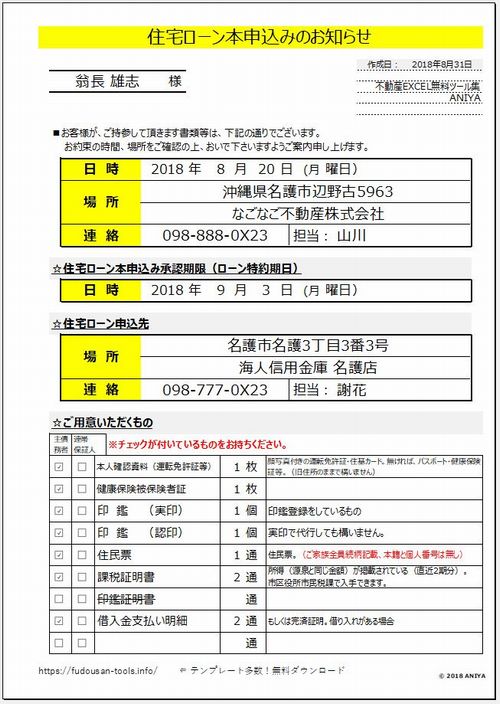 おすすめ!契約後最初に届ける案内状も手抜きせずに”住宅ローン本申込みのお知らせ”【不動産EXCEL無料テンプレート】