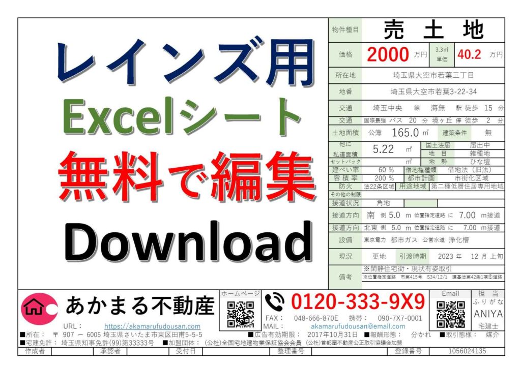 おすすめ!”展示用図面” 店頭に飾る”新築戸建て、中古戸建て、土地、中古マンション”紹介用図面【不動産EXCEL無料ツール】
