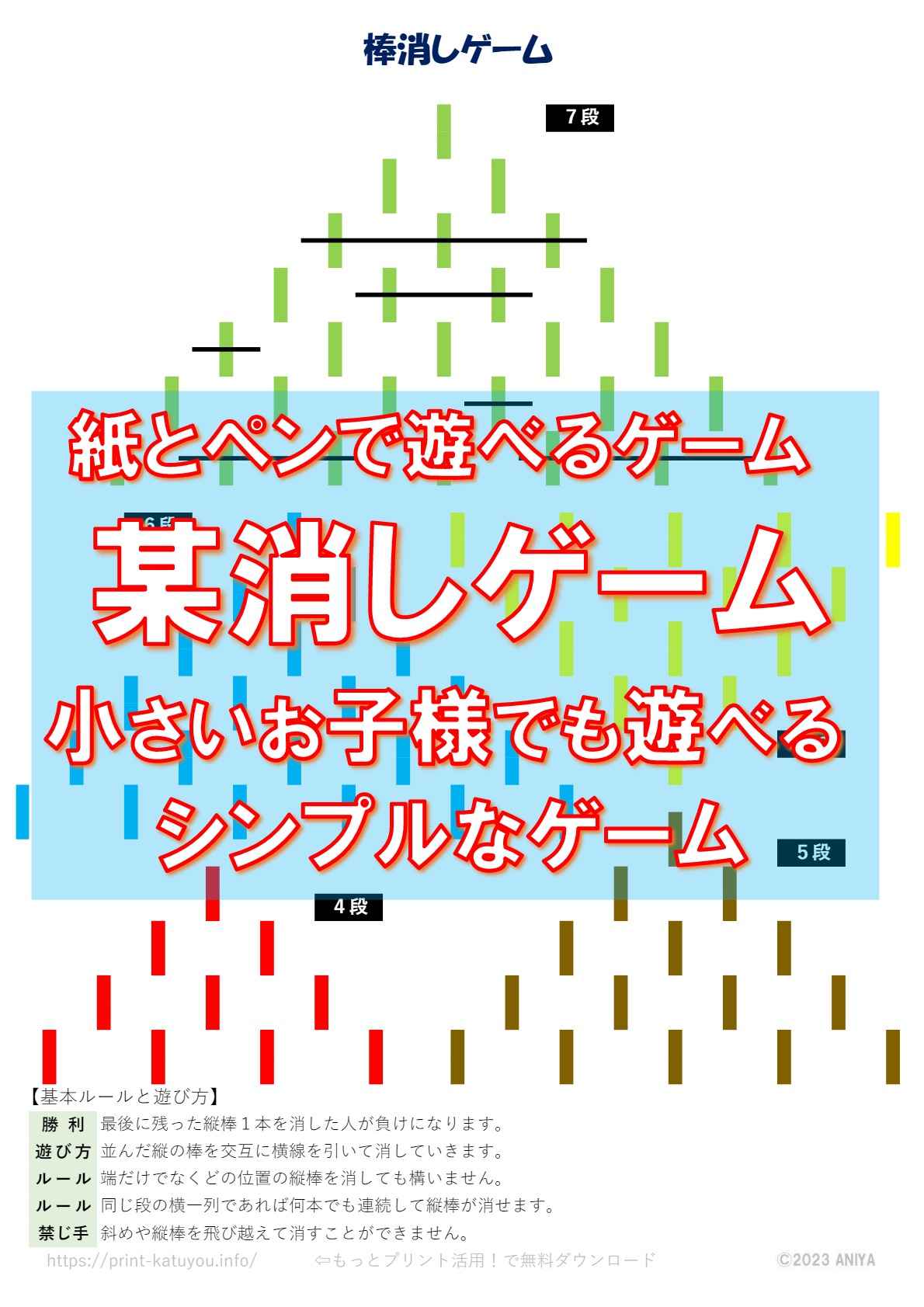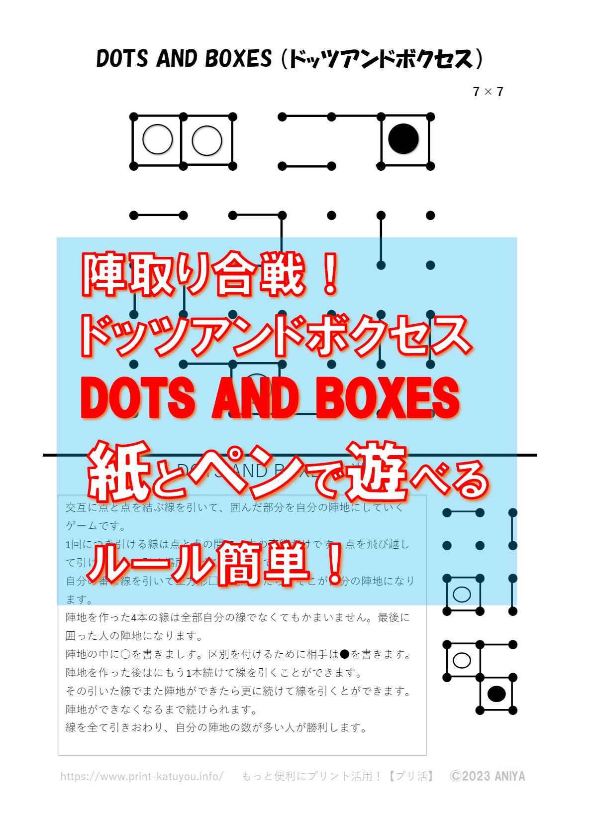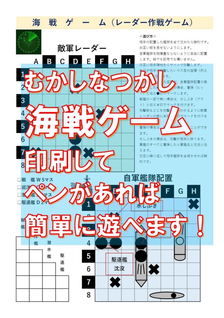 A4用紙に印刷してペンだけで遊べるゲームです。