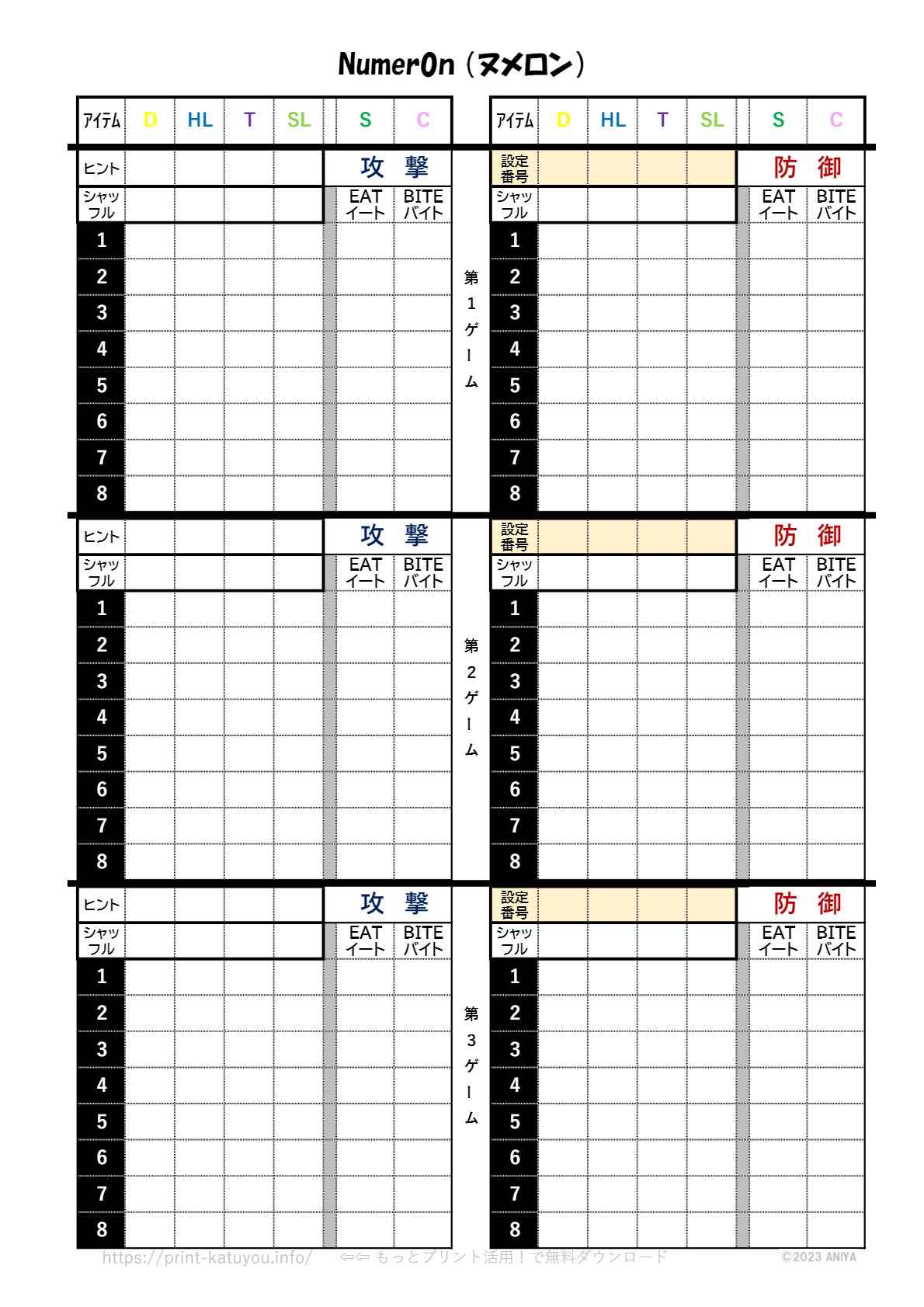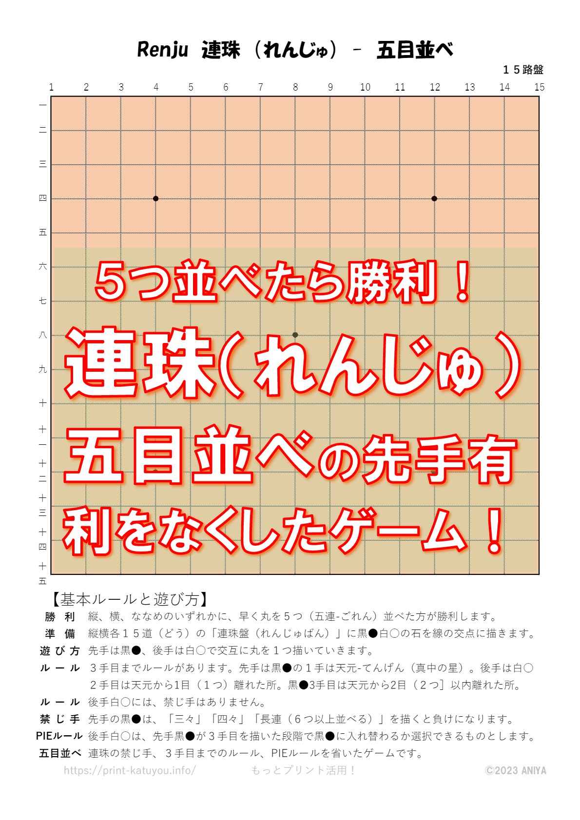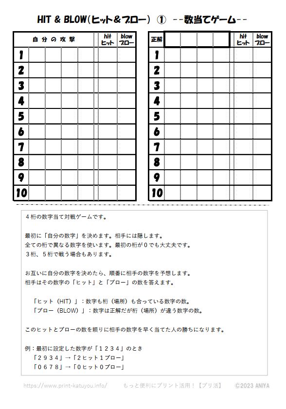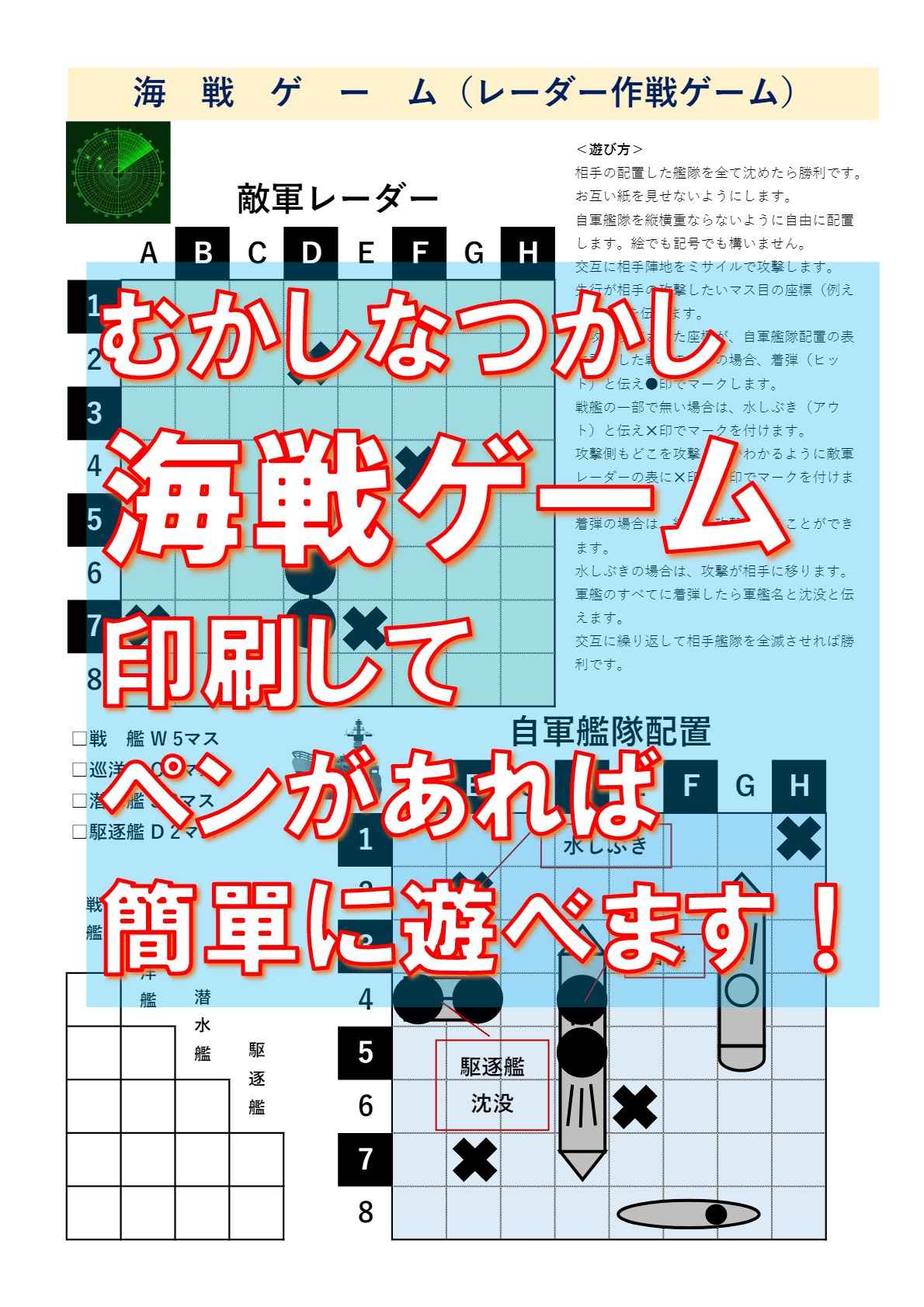 A4用紙に印刷してペンだけで遊べるゲームです。