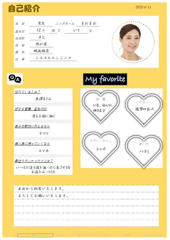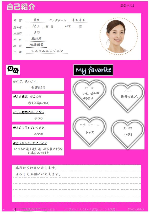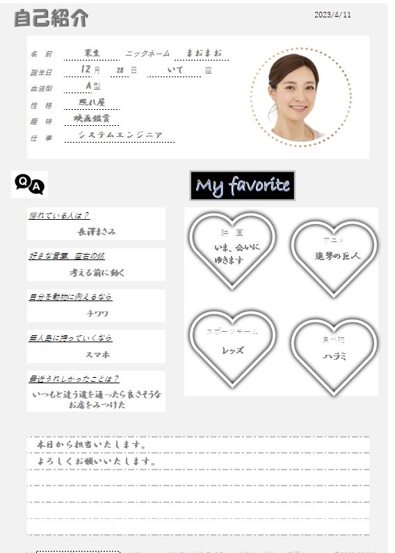 自己紹介シート