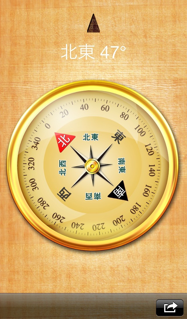 その名もずばりコンパスです。 見やすくてとて美しいデザインがこのアプリのポイントです。 表示も大きくコンパスが画面を広く利用していて、文字のフォントも大きめです。 日本語表示にも対応していてとても見やすくなっています。この日本語表示に対応していないアプリが多くあります。 GPSに連動して方位をスムーズに合わせています。美しいスキンを3集類から選ぶこともできます。
