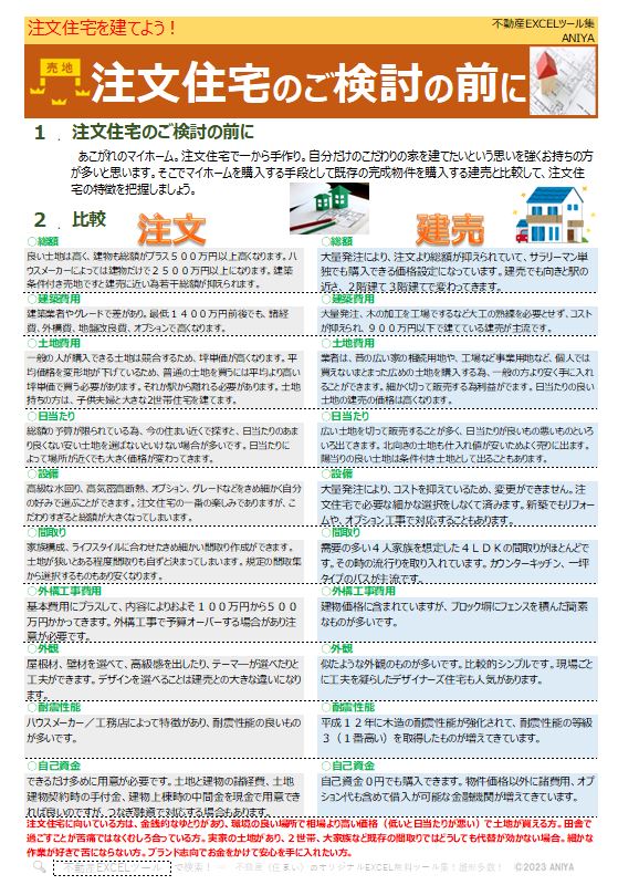 おすすめ!”【注文住宅】注文住宅を検討する前に”【不動産EXCELテンプレート】