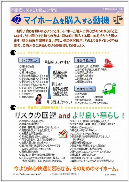 おすすめ!みんながマイホームを購入する動機って何だろう?”ANIYA【役立情報】マイホームを購入する動機”【不動産EXCEL無料テンプレート】