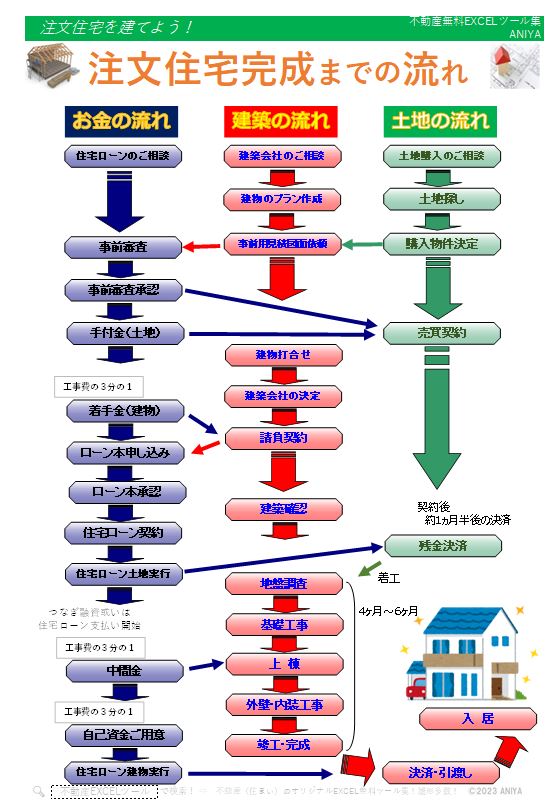 おすすめ!複雑な注文住宅が完成するまでの契約やお金の流れ”ANIYA【注文住宅】注文住宅完成までの流れ”【不動産EXCELテンプレート】