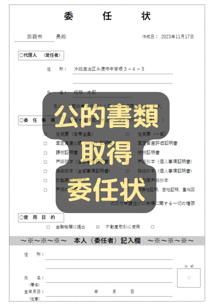 おすすめ!”公的書類取得委任状” 住民票、公課証明書他様々な書類がこれ1枚で取得可能!【不動産EXCELテンプレート】